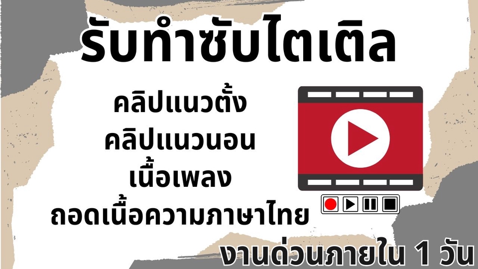 รับฝังซับในวิดีโอจากสคริปต์ที่ลูกค้าส่งมา เหมาะสำหรับครีเอเตอร์ ยูทูบเบอร์ หรือคนขายของที่อยากให้คลิปมีซับดูน่าสนใจมากขึ้น - รับถอดเสียงเฉพาะภาษาไทย - กรณีถ้าต้องการฝังซับมากกว่า 1 ภาษา ต้องมีสคริปต์มาให้ค่ะ - เหมาะกับคลิปรีวิว, vlog, shorts, หรือคอนเทนต์ขายของ - ได้ไฟล์วิดีโอพร้อมซับทันใช้งาน - หากต้องการไฟล์ .SRT สามารถแจ้งได้ค่ะ - งานด่วนภายใน 1 วัน (สามารถสอบถามคิวก่อนได้ค่ะ) *ไม่รับแปลภาษานะคะ Add on - ตั้งแต่นาทีที่ 16 ขึ้นไปเพิ่มความยาวทุก ๆ 5 นาที +100 บาท - เพิ่มภาษา (สองภาษาพร้อมกันในคลิปเดียว) +50 บาท ขั้นตอนการทำงาน 1. แจ้งรายละเอียดแพ็คที่เลือก พร้อมบรีฟรายละเอียดที่ต้องการ 2. บอกขนาด สี ฟอนท์(แจ้งด้วยว่าใช้ในเชิงพาณิชย์หรือไม่) / ถ้ามี LOGO ส่งมาได้เลยค่ะ 3. ทำตัวอย่างส่งให้ดูเป็นภาพ เพื่อเช็กตำแหน่งของซับก่อนเริ่มลงมือทำ 4. ส่งงานให้เช็กความเรียบร้อย หากมีต้องแก้ไขสามารถแจ้งกลับได้เลย 5. ส่งงานไฟนอลเป็นไฟล์ ผ่านไดรฟ์แชร์ MP4