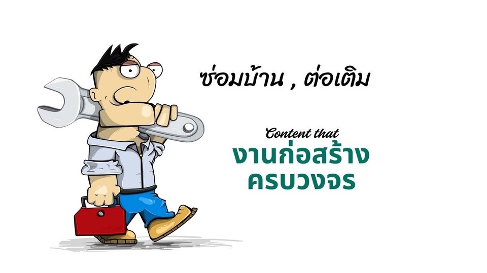 เราทำงานอย่างมีระบบ ที่ชัดเจนเขียนแบบ, Present , ถอดใบเสนอราคาจากแบบที่ทำจริง , ลูกค้าสามารถตรวจสอบราคาวัสดุได้ทุกรายการ ขั้นตอนการก่อสร้างมีการส่งรายงาน ผ่าน Application Line (Daily Reports) ให้รับทราบทุกขั้นตอน มีประโยชน์ใชในการตรวจสอบย้อนหลังได้ตลอดเวลา ทางเราจะส่งรายงานเช่น จะใช่เหล็กขนาดเท่าไร, คอนกรีตที่ใช่เป็นแบบไหน พร้อมแนบเอกสารยืนยัน , และ วัสดุอื่นๆ จะถ่ายรูปให้รับทราบว่า วัสดุนั้นๆมีตรา มอก. หรือ เครื่องหมายมาตราฐานการค้าอื่นๆ เช่น ISO. SYS, TIS, JIS เป็นต้น เพราะฉนั้นเราคือผู้ให้บริการที่โปร่งใส ตรงไปตรงมา ลูกค้าสบายใจได้เงินทุกบาทที่เสียไปกับเรา คุณจะได้งานที่มีคุณภาพสูงสุด สนใจทักมาสอบถามพูดคุยกันก่อนครับ ยินดีให้ทุกคำปรึกษา. ขั้นตอนการทำงาน 1. ส่งข้อมูลที่ต้องการ ซ่อมแซม, ต่อเติม, สร้างใหม่ 2. ประเมินราคางบประมาณเบื้องต้น ผ่านแบบฟอร์มใบราคา Fastwork 3. เริ่มงานหลังชำระ ไม่เกิน 2-3 วัน