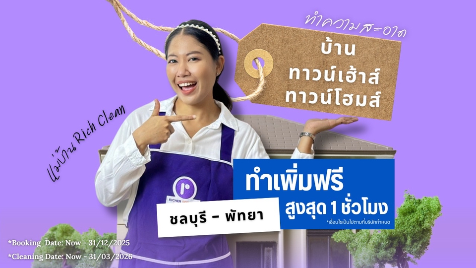 แม่บ้าน บริการทำความสะอาดทั่วไป บ้าน ทาวน์เฮาส์ ทาวน์โฮม (ชลบุรี-พัทยา)