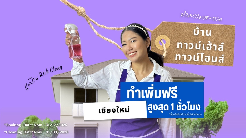 แม่บ้าน บริการทำความสะอาดทั่วไป บ้าน ทาวน์เฮาส์ ทาวน์โฮม (เชียงใหม่)