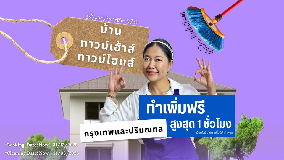 แม่บ้าน บริการทำความสะอาดทั่วไป บ้าน ทาวน์เฮาส์ ทาวน์โฮม (กรุงเทพและปริมณฑล)