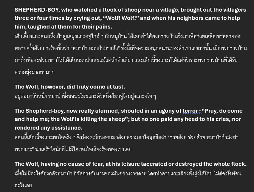 เเปลภาษา อังกฤษ-ไทย จากนิทาน