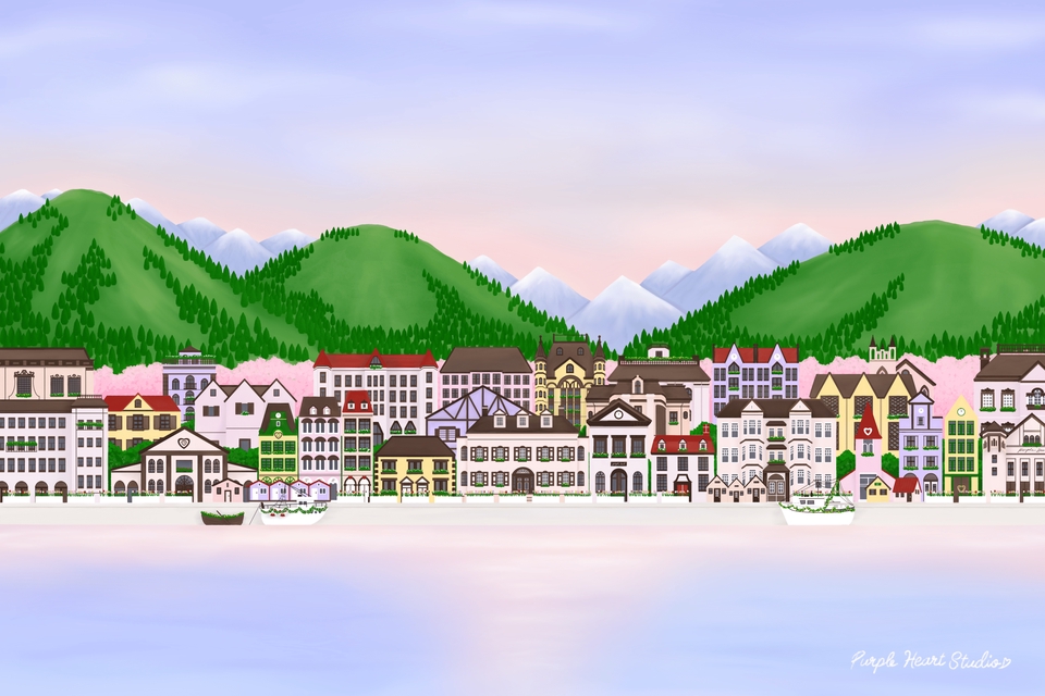รับวาดภาพประกอบ Digital Illustration วิวทิวทัศน์ บ้าน อาคาร ร้านค้า สถาปัตยกรรม