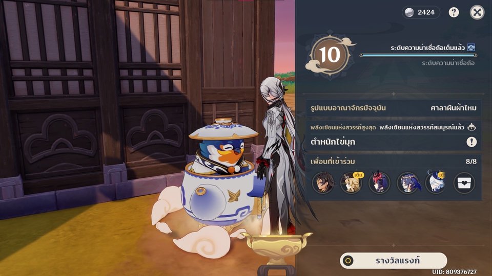 ฿500ดูแลไอดี 15 วัน - ทำเควสประจำวัน - เคลียร์ Resin 160 แต้ม/วัน (เลือกของที่ต้องการให้ฟามเองได้) - ส่งออกการสำรวจ / รับของรางวัลการออกสำรวจ - เก็บ Crsytal Core 15 ชิ้น ต่อวัน (หากต้องการให้เก็บอย่างอื่น สามารถบอกได้) - ทำเควส Battle Pass - ตีบอสรายสัปดาห์ - ตีบอสอัพตัวละคร - ทำเควสชื่อเสียง (เควสคำขอ, เควสปราบปราม / เลือกเมืองเองได้) - เคลียร์กิจกรรม Event - ให้คำแนะนำแนวทางการปั้นหรือปรับของตัวละคร + กดรับเหรียญในระบบกาน้ำชาทุกๆ 3 วัน + ปั้นตัวละคร 1 ตัว หากต้องการ + เคลียร์ Abyss ชั้น 9 - 12