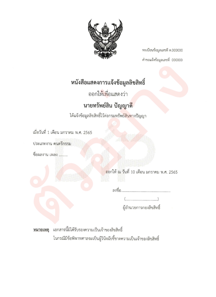 - • เอกสารจดแจ้งลิขสิทธิ์