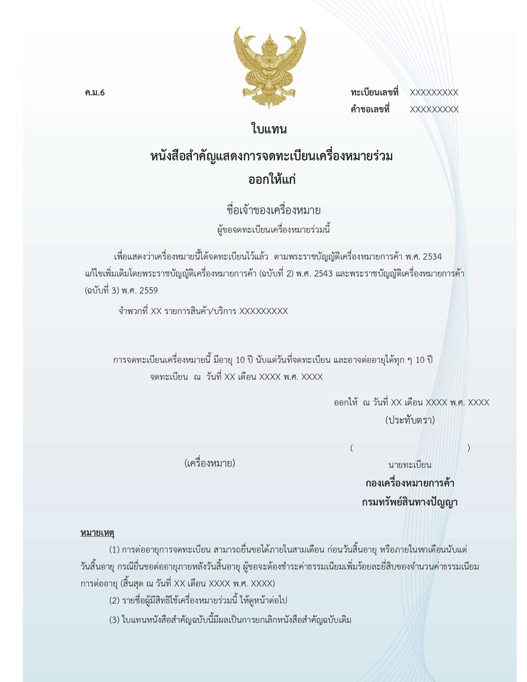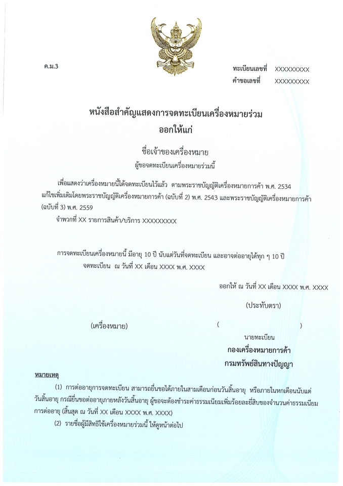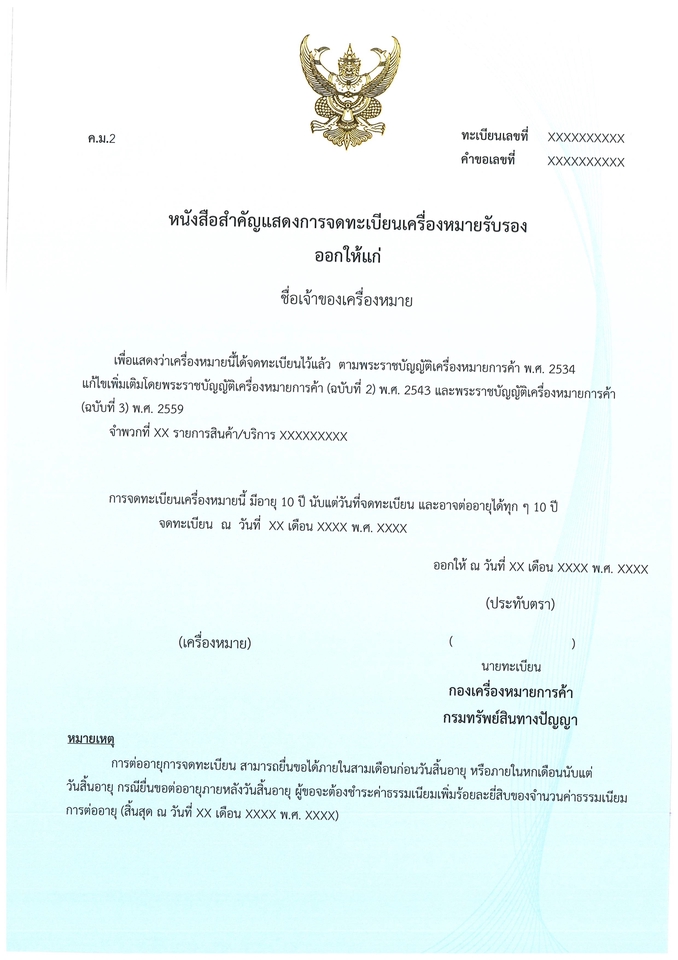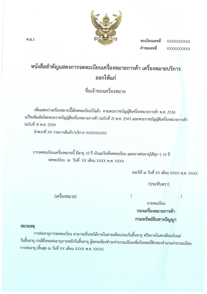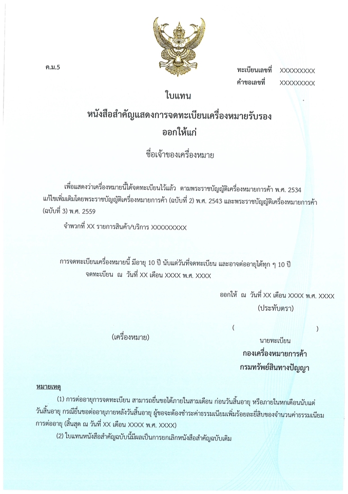 - • เอกสารจดทะเบียนเครื่องหมายการค้า