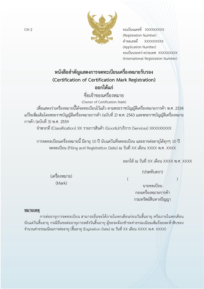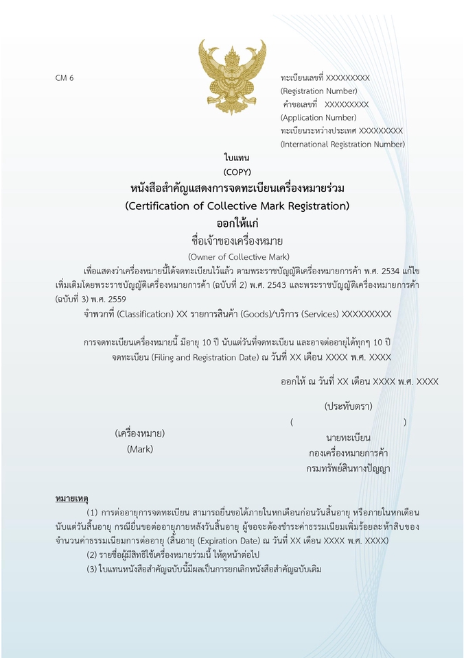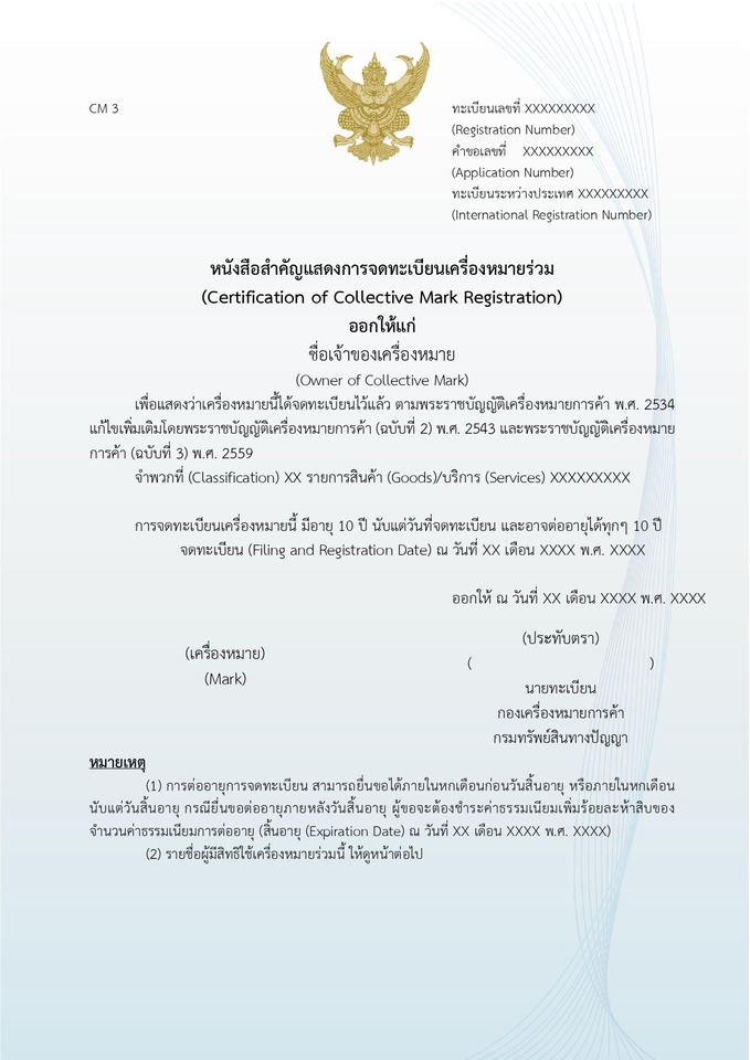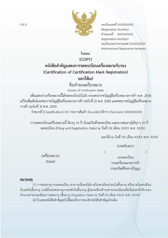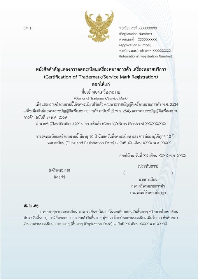 - • เอกสารจดทะเบียนเครื่องหมายการค้า