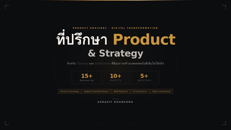 ประสบการณ์ด้าน Product Management และ Digital Transformation มากกว่า 15 ปี เหมาะสำหรับ: - Startup ที่กำลัง Scale และต้องการ Product Strategy - SME ที่อยากทำ Digital Transformation แต่ไม่รู้จะเริ่มจากไหน - Corporate ที่ต้องการ Advisor ระดับ C-Level แบบ Flexible