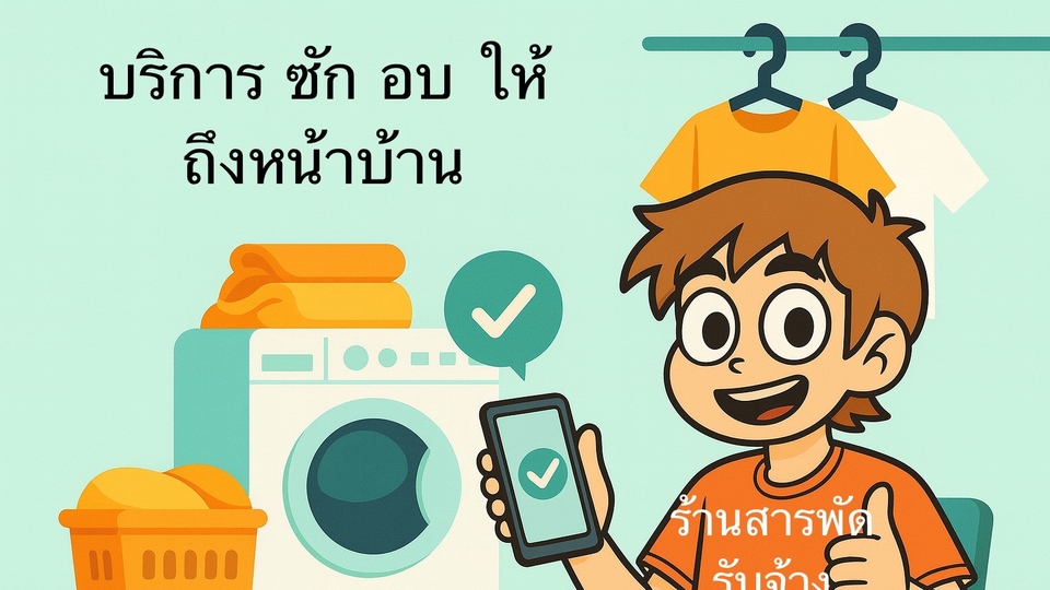 บริการรับ-ส่งผ้าไปซัก อบ พับ พร้อมส่งให้ถึงหน้าบ้าน ทุกแพ็คเกจ ฟรีน้ำยาซักผ้า รับประกันผ้าห๊อม..หอมมม ราคาค่าบริการ แพ็คเกจ S เสื้อผ้าทั่วไป 20-40 ชิ้น 500 บาท M เสื้อผ้าทั่วไป 30-50 ชิ้น 550 บาท ชุดเครื่องนอน ชุดละ 500 บาท ผ้านวมผืนใหญ่ ผืนละ 550 บาท