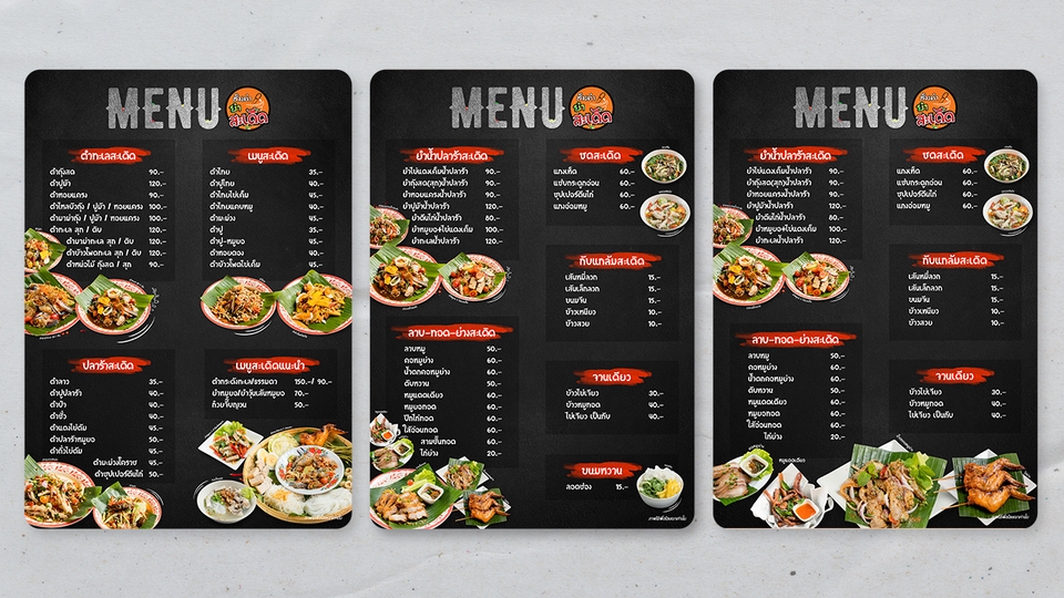 -รับออกแบบเมนูอาหารและสื่อออนไลน์ทุกชนิด งานสวย งานคุณภาพ งานไว งานเร่งด่วนก็รับ ทำได้หลากหลายสไตล์ตามลูกค้าต้องการ -รับไดคัทเมนูอาหาร สิ่งที่ต้องเตรียม 1. รูปโลโก้ของลูกค้า (ถ้ามี) 2. ข้อความและรายละเอียดที่จะระบุในภาพ 3. ภาพสินค้าหรือบริการที่ไดคัทแล้ว (กรณีภาพยังไม่ได้ไดคัทเรามีบริการไดคัทให้ครับ) 4. รูปแบบและโทนสีที่ต้องการ (ถ้าเป็นตัวอย่างงานที่ต้องการจะดีมากครับ) 5. ขนาดภาพที่ต้องการ 6. หากต้องการไฟล์ psd เพื่อนำไปปรับแก้ไขเองเพิ่ม 300 บาท / ชิ้น 7. แก้ไขได้ไม่เกิน 3 ครั้งต่องาน *ทักมาคุย มาสอบถามได้ตลอดนะครับ ใจดีมากครับ ... ^^ ขั้นตอนการทำงาน 1. ลูกค้าส่งรายละเอียดงานที่ต้องการให้ทำ 2. ทางเราจะติดต่อกลับเพื่อแจ้งราคาและวันส่งมอบงาน 3. ลูกค้าส่งข้อมูลต่างๆ ให้ทางเราครบถ้วน 4. ส่งงานลูกค้าตามกำหนดและแก้ไขได้ 3 ครั้ง
