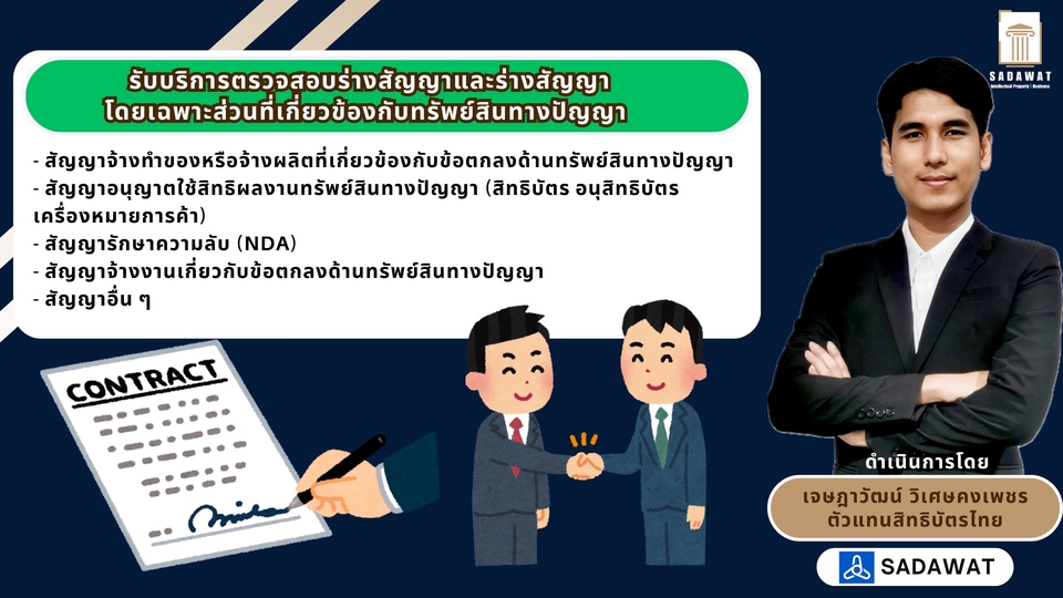 บริการร่างสัญญาที่เกี่ยวข้องกับทรัพย์สินทางปัญญาและสัญญาอื่น ๆ ราคา 2,500 บาท