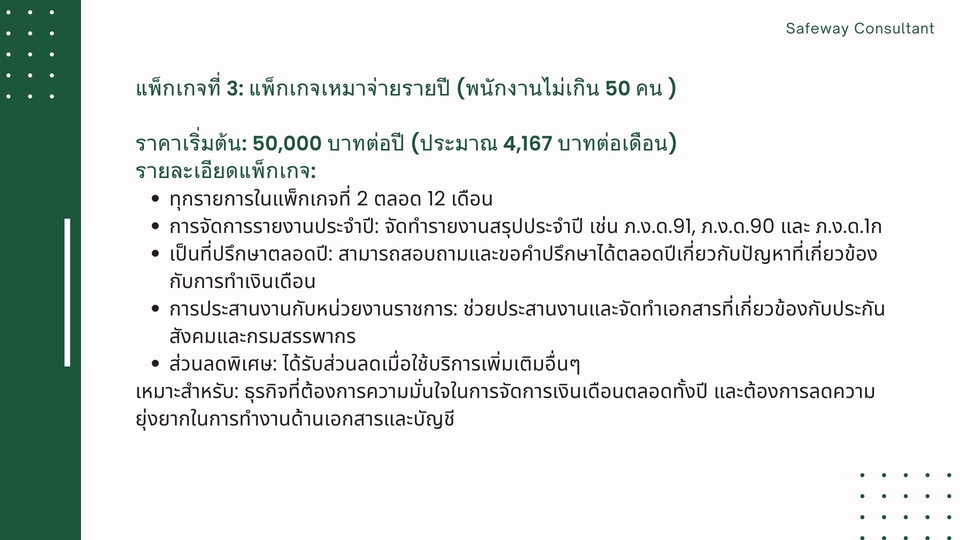แพ็กเกจที่ 2: รับเหมาจ่ายรายปี (พนักงานไม่เกิน 50 คน )