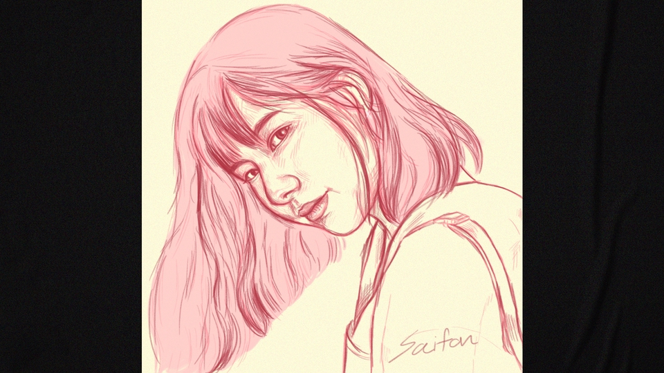 วาดภาพ Portrait ขาวดำ l สีไม้ l Digital painting