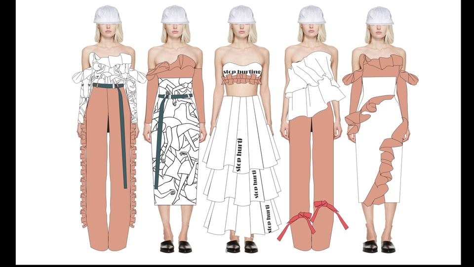 -แนวสปอร์ต ,แนวสตรีท -แนวครีเอทีฟ (Creative) -ชุดเดรส แซ่บๆ ขั้นตอนการทำงาน 1. 1.ลูกค้าแจ้งรายละเอียดของแบบงานที่อยากได้มีภาพประกอบหรือ Reference นำมาแจ้งได้ 2. 2.สรุปขั้นตอนการทำงานว่าลูกค้าต้องการกี่แบบกี่ชุดตามแบบของลูกค้าและระยะเวลาของการไฟล์งาน 3. 3.ขึ้นแบบงานให้ลูกค้าครั้งแรก (ปรับแก้ไขได้ไม่เกิน 3 ครั้ง) 4. 4.ส่งมอบไฟล์งานเป็น JPG,PSD