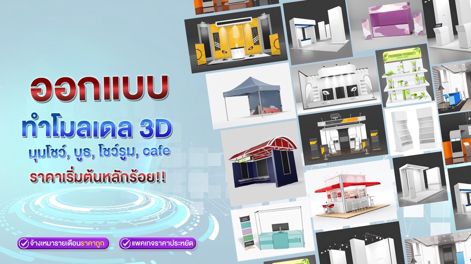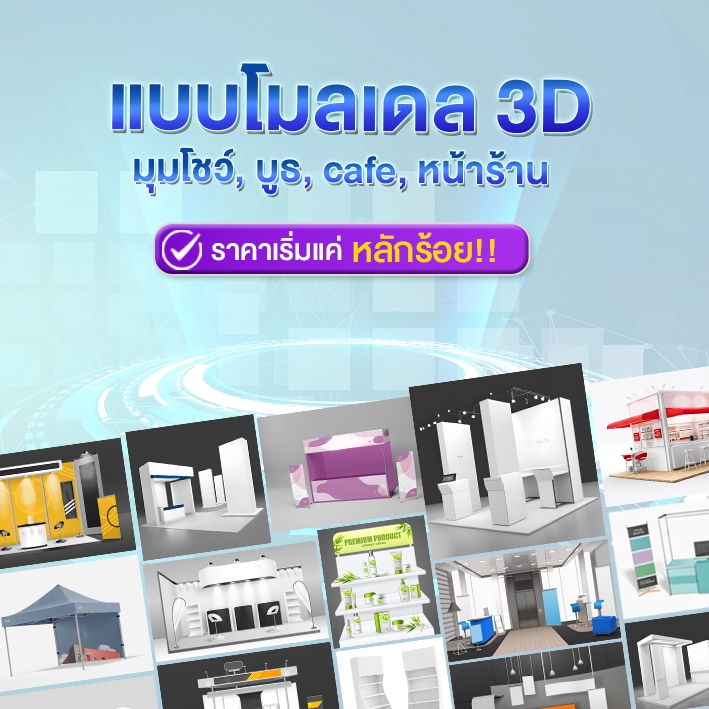 ทำแบบและออกแบบโมเดล 3D บูธ มุมโชว์ หน้าร้าน cafe
