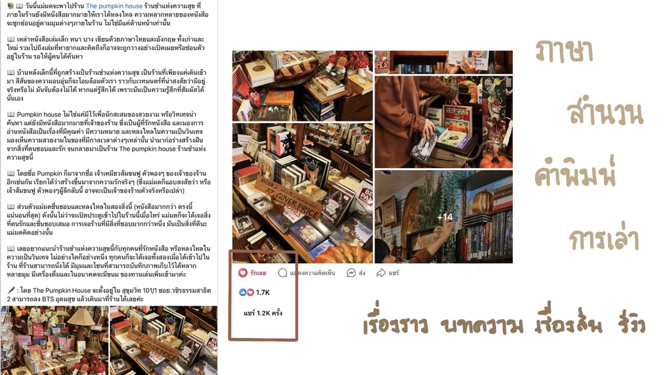 ฿400รับงานเล่า รีวิวหนังสือ เฉพาะเรื่องที่น่าสนใจหรือเป็นทางที่ผู้เขียนรัก ชื่นชอบและอ่านได้ สามารถพูดคุยก่อนพิจารณาจ้างงานได้ค่ะ ผู้เขียนเป็นนักอ่าน งานรีวิวหนังสือ 700-800 คำ : ราคาเริ่มต้น 400 บาท