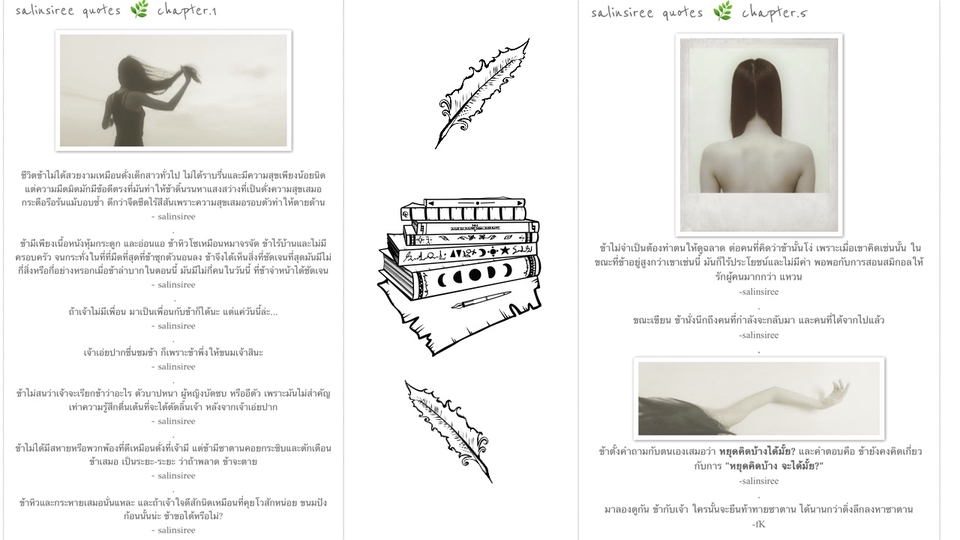 📚📖🖋️ เป็นเพียงแม่มดธรรมดาผู้แสนเศร้าตนหนึ่ง ที่ปกติใช้ชีวิตอยู่ในอีกโลกหนึ่งกับหนังสือหนังหาของเธอ หากแต่เธอเหงา และอยากหาสิ่งที่เธอรักเพื่อสร้างสรรค์ให้เป็นผลงาน เลยก่อร่างสร้างตัวตนในที่นี้ เพื่อที่อย่างน้อยผลงานเล็กๆของเธออาจจะเป็นค่าขนมในการซื้อหนังสือเล่มใหม่ๆ , มัทฉะนม และช็อคโกแลตเย็นๆ หรือมันฝรั่งสักหัวมาทำของอร่อยๆ 🌨️🥀🎨หนังสือ ตัวอักษร ศิลปะ