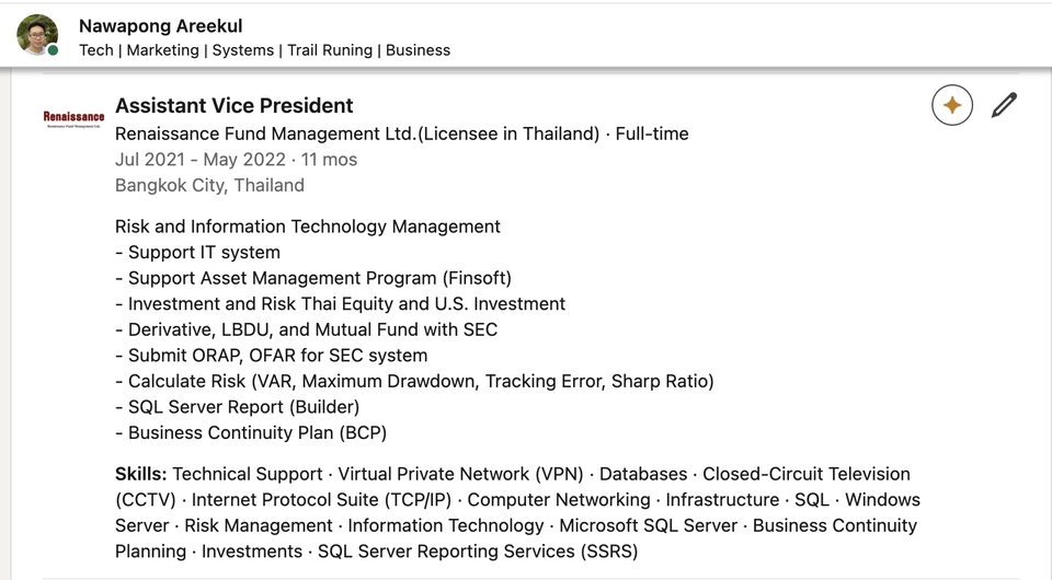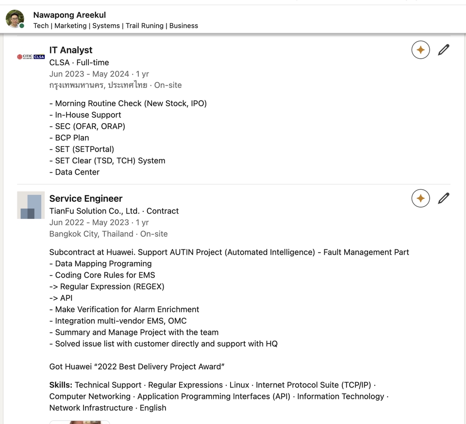 IT Expert (Huawei/CLSA) & Admin กลุ่ม 120k+ อดีต IT Analyst ดีกรี Best Delivery 2022 เชี่ยวชาญ Infrastructure ผู้ก่อตั้ง "Trail Thailand" (ชุมชนนักวิ่ง 1.2 แสนคน) บริการ: 🔹 IT Support: กู้ข้อมูล, Backup, Network (Enterprise) 🔹 MarTech & AI: Dashboard, SEO, ยิง Ads 🔹 Automation: Python/Regex ลดงานซ้ำซ้อน