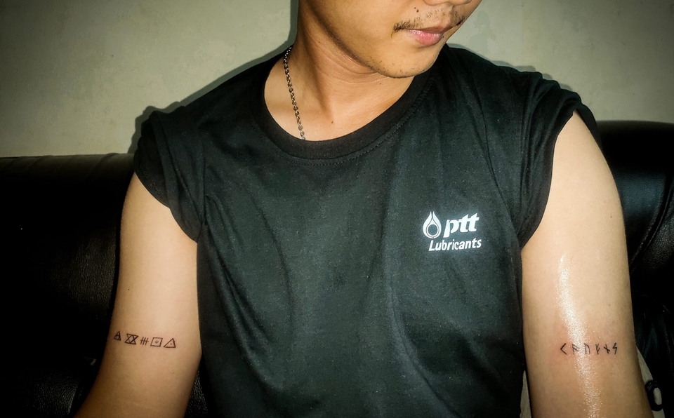 การออกแบบลายสัก ตามความต้องการของลูกค้าให้ตรงกับความหมาย สัญลักษณ์แทนความรู้สึก ความหมายดีๆ รูปแบบที่สวยงาม การใช้ฟ้อนต์ ใช้รูปแบบที่แตกต่าง ให้น่าสนใจ และมีความหมายตรงตามที่ลูกค้าต้องการ ขั้นตอนการทำงาน 1. เสนอรูปแบบงานให้เลือกตามบรีฟงาน 2. เริ่มงานตามบรีฟของลูกค้า 3. ส่งงานให้ตรวจก่อนจบงาน