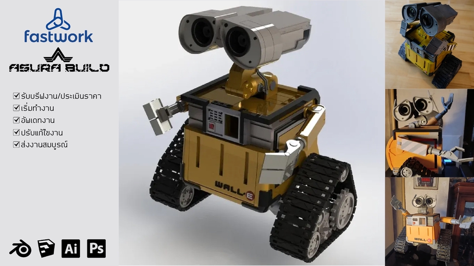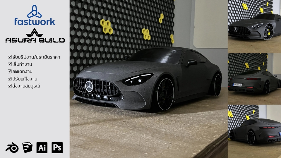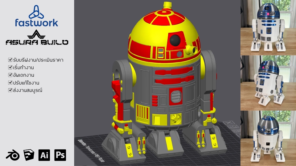 🛠 รายละเอียดของการปริ้น 3D Model ด้วยระบบ FDM -ปริ้นโมเดลต้นแบบ (Prototype) – อุปกรณ์วิศวกรรม, ตัวอย่างสินค้าก่อนผลิต -ปริ้นโมเดลจำลอง,งานRC รถ/เรือ/เครื่องบิน/ยานอวกาศ/ของเล่น/ฟิกเกอร์/โมเดลตั้งโชว์ – ฟิกเกอร์อนิเมะ, หุ่นยนต์, ของตั้งโต๊ะ -ปริ้น3มิติอะไหล่ทดแทน/ซ่อมบำรุง – อะไหล่เครื่องใช้ไฟฟ้า, ชิ้นส่วนพลาสติกที่ไม่มีขาย -ปริ้น3มิติงานเคส/โครง/กล่องอุปกรณ์ – เคส Arduino, Raspberry Pi, housing อุปกรณ์ต่าง ๆ -ปริ้น3มิติงานตกแต่ง/ของขวัญสั่งทำ – พวงกุญแจ, โลโก้, ป้ายชื่อ, ของชำร่วย ***ส่งไฟล์ต้นแบบหรือภาพมาสอบถามและประเมินราคาได้ ก่อนเริ่มงาน (ถ้าให้ออกแบบเพิ่มเติมหรือในกรณีที่ต้นแบบไม่ชัดเจนจะคิดค่าออกแบบเพิ่มเติม ราคาขึ้นอยู่ที่ลายละเอียด) ✅ ขั้นตอนการรับงานพิมพ์ 3D 1. รับไฟล์หรือออกแบบ -ลูกค้าให้ไฟล์ STL, OBJ, STEP หรือไฟล์ 3D อื่น ๆ -ถ้ายังไม่มีไฟล์: เสนอ บริการออกแบบ (3D modeling) ด้วยโปรแกรม เช่น Fusion 360, Blender, Sketchupโดยคิดค่าบริการแยก 2. ตรวจสอบไฟล์ -แก้ไขไฟล์ถ้าจำเป็น (ใช้โปรแกรม Blender, Sketchup เป็นต้น) 3. เลือกวัสดุและเทคโนโลยีการพิมพ์ -FDM (ใช้ PLA, ABS, PETG ฯลฯ) – ราคาถูก เหมาะกับงานทั่วไป 4. เสนอราคาและระยะเวลา -คำนวณจาก: -ปริมาตรชิ้นงาน (cm³ หรือ g) -ระยะเวลาพิมพ์ (ชั่วโมง) -ค่าวัสดุ + ค่าแรงเครื่อง -ค่าบริการเพิ่มเติม (ออกแบบ, post-process) -แจ้งลูกค้าอย่างละเอียด พร้อมตัวเลือกวัสดุ 5. พิมพ์งาน -Slice ด้วยโปรแกรม (เช่น Cura, PrusaSlicer, Chitubox) -ปรับค่าการตั้งพิมพ์ เช่น: -Layer height -Infill % -Supports - Speed & temperature 6. Post-Processing -ขัดผิว / ทาสี / ประกอบ (แล้วแต่งาน) 7. ส่งมอบงาน -ตรวจคุณภาพก่อนส่ง -แพ็คของอย่างดี ป้องกันชิ้นส่วนแตกหัก -ส่งทางไปรษณีย์, ขนส่งที่ลูกค้าสะดวก