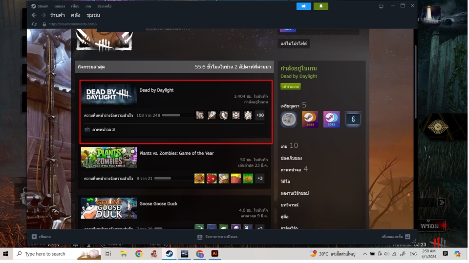 รับจ้างเล่นเกม Dead by Daylight (PC)