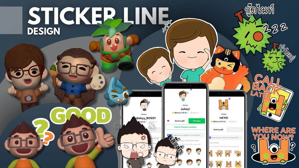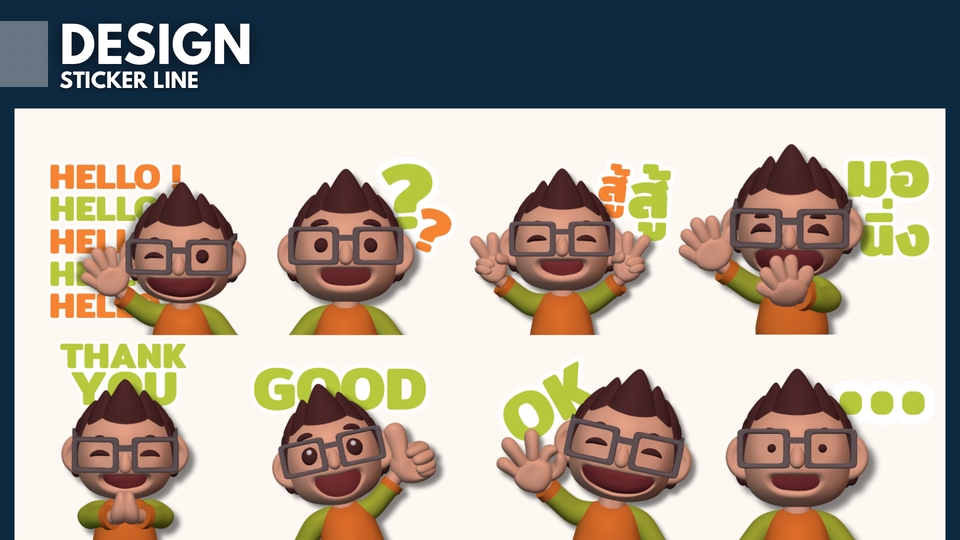 ออกแบบ CHARACTER DESIGN 3D + LINE Sticker 3D 8 ตัว