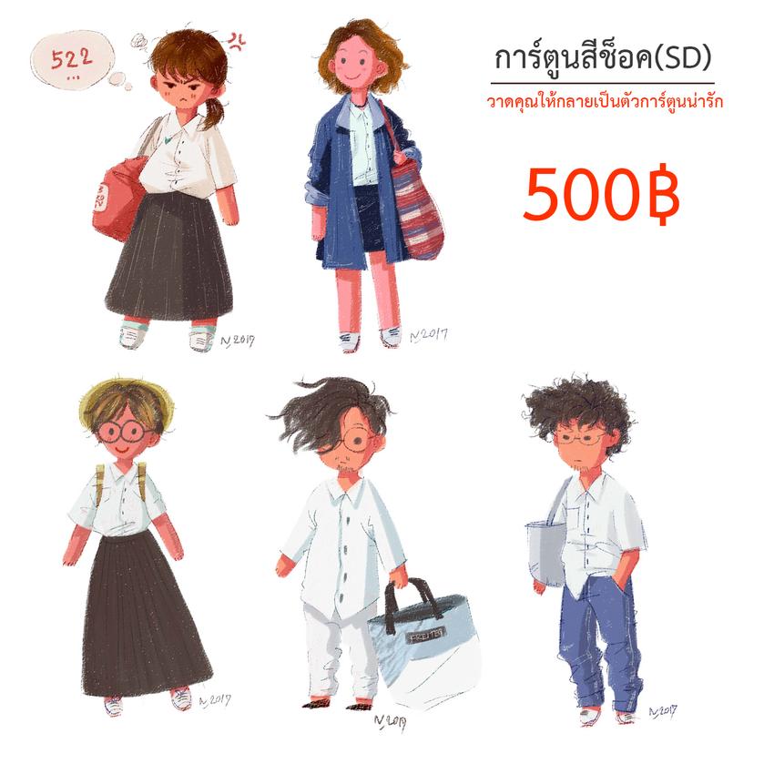 รับออกแบบคาแรคเตอร์ วาดการ์ตูนแนวสีช็อค แฟนอาร์ต - การ์ตูนแนวน่ารักๆสีช็อคสีเทียน - เปลี่ยนตัวคุณให้เป็นตัวการ์ตูน - วาดแฟนอาร์ตศิลปิน - วาดประกอบหนังสือหรือนิยาย - etc. สามารถสอบถามก่อนได้ค่ะ ***ผู้วาดเสนอไอเดียให้ฟรี ไม่คิดค่าใช้จ่าย*** หนูใจดี เต็มที่กับทุกๆงาน ช่วยอุดหนุนด้วยนะคะ ^_^ รายละเอียดราคาเพิ่มเติม หากต้องการฉากหลังคิดเพิ่ม 200฿ 1 คน/1ภาพ/500฿ ถ้าเพิ่มคน คิดหัวละ 150฿ (เต็มตัว+250฿) สามารถแก้งานสำเร็จได้ 2 ครั้ง เกินกว่านั้นคิดเพิ่ม 100฿ ขั้นตอนการทำงาน 1. 1. ให้แจ้งก่อนว่าต้องการงานแบบไหน คุยเรื่องลักษณะคาแรคเตอร์นั้นกับผู้วาด ***ผู้วาดเสนอไอเดียให้ฟรี ไม่คิดค่าใช้จ่าย*** 2. 2. หากวาดจากภาพบุคคลให้ส่งภาพที่เห็นครึ่งตัว-เต็มตัว (ไม่เห็นแค่หน้า) 3. 3. ผู้วาด วาดรูปโดยใช้โปรแกรม Procreate on Ipad pro 4. 4. เมื่อตกลงเสร็จจะส่งแบบร่างให้ดูก่อน (แก้จนกว่าจะลงตัว แก้ฟรี**) 5. 5. ลงสีตัดเส้นเสร็จ สามารถแก้งานสำเร็จได้ 2 ครั้ง 6. 6. ส่งไฟล์เป็น .jpg .png .psd โดยขนาดจะได้ตามที่ลูกค้าต้องการ 7. 7. ลูกค้าโอนเงินครบจำนวนเป็นอันเสร็จสิ้นงาน หนูใจดี เต็มที่กับทุกๆงาน ช่วยอุดหนุนด้วยนะคะ ^_^