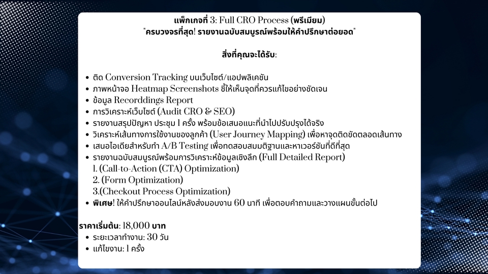 - • การวิเคราะห์เว็บไซต์ (Audit CRO)
