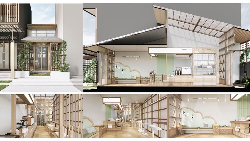 งานออกแบบสถาปัตยกรรมทั้งภายนอกและภายใน คาเฟ่ ร้านอาหาร