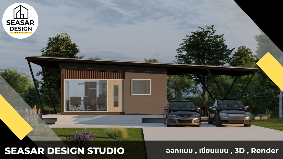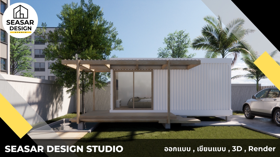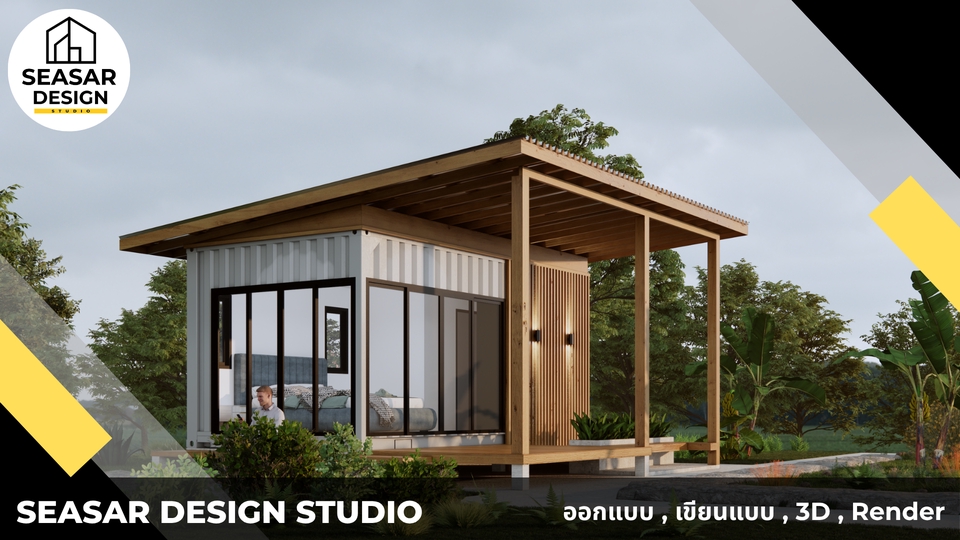 ออกแบบบ้าน/ร้าน/คาเฟ่จากตู้คอนเทนเนอร์ | พร้อมภาพ 3D + แบบก่อสร้าง