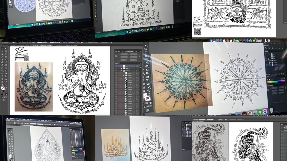 ดราฟลายเส้นอักขระยันต์ ให้เป็น Vector (.ai) ขยายไม่แตก