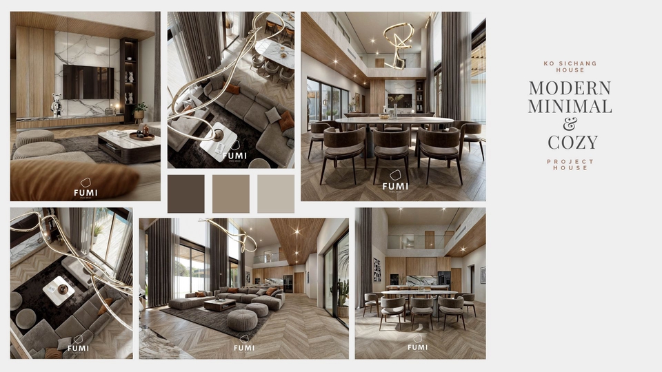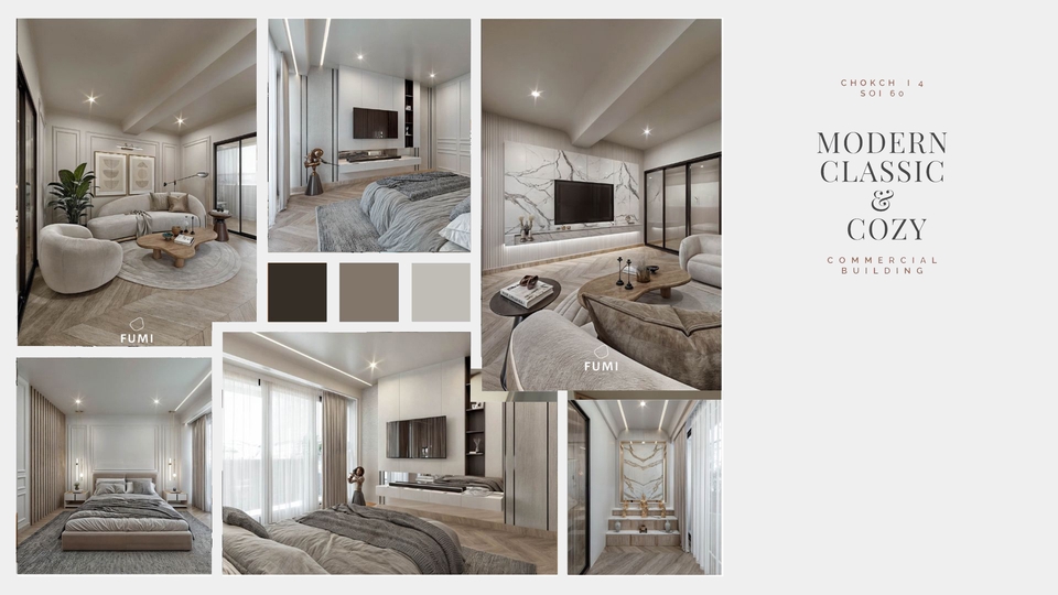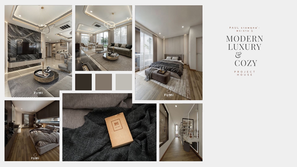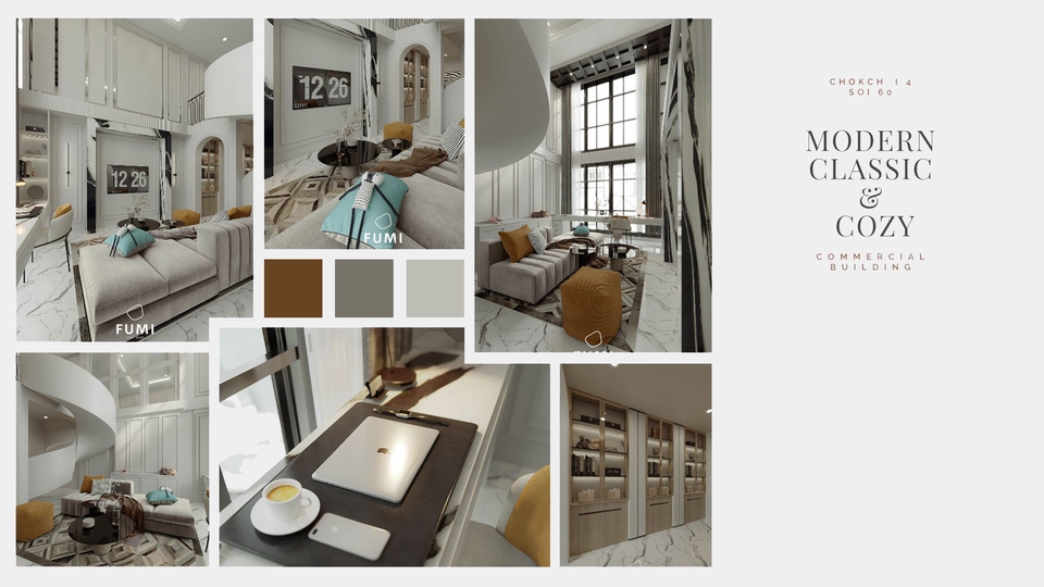 Warm Space ออกแบบ + เลือกวัสดุ + ทำภาพ 3D ให้เห็น mood&tone ของงานจริง