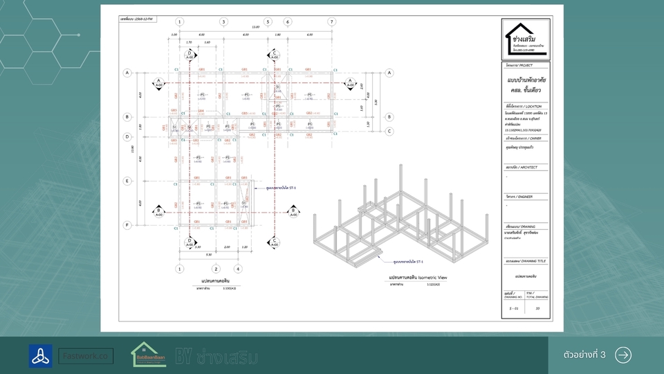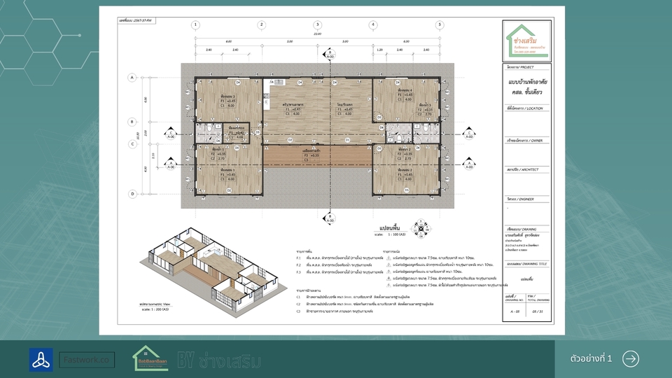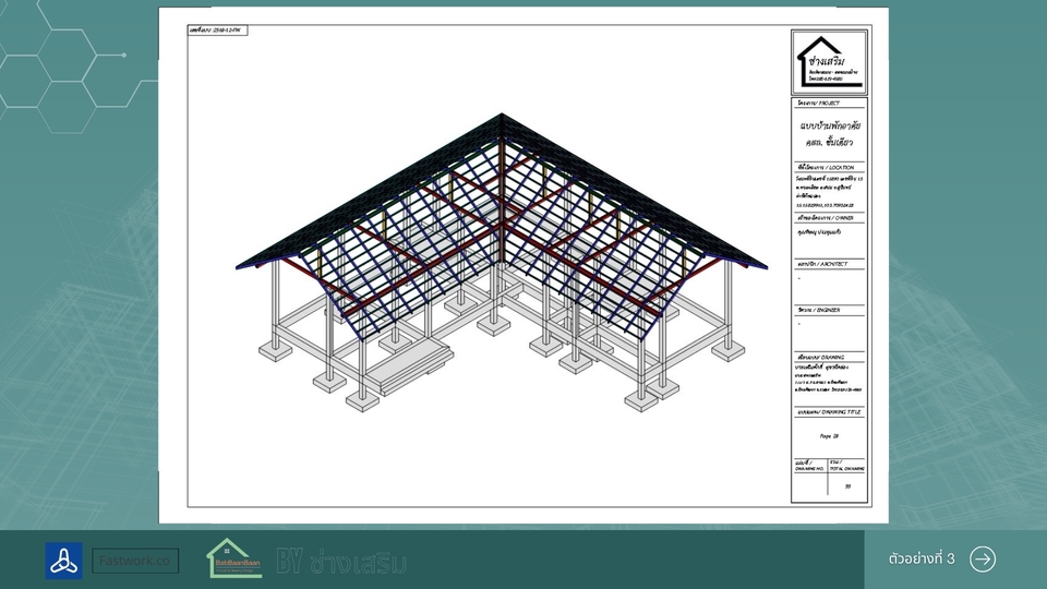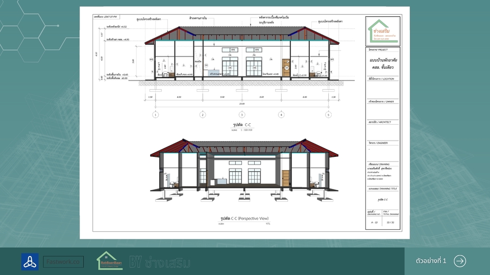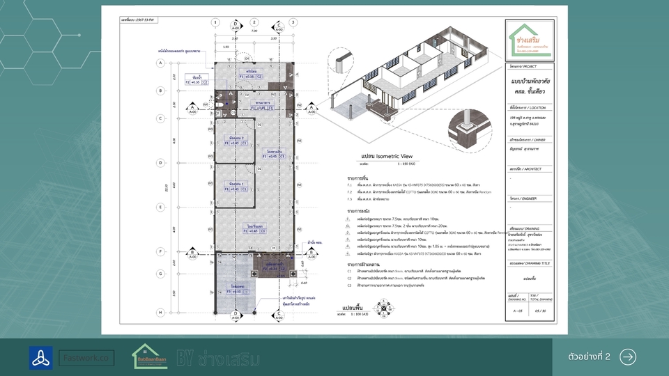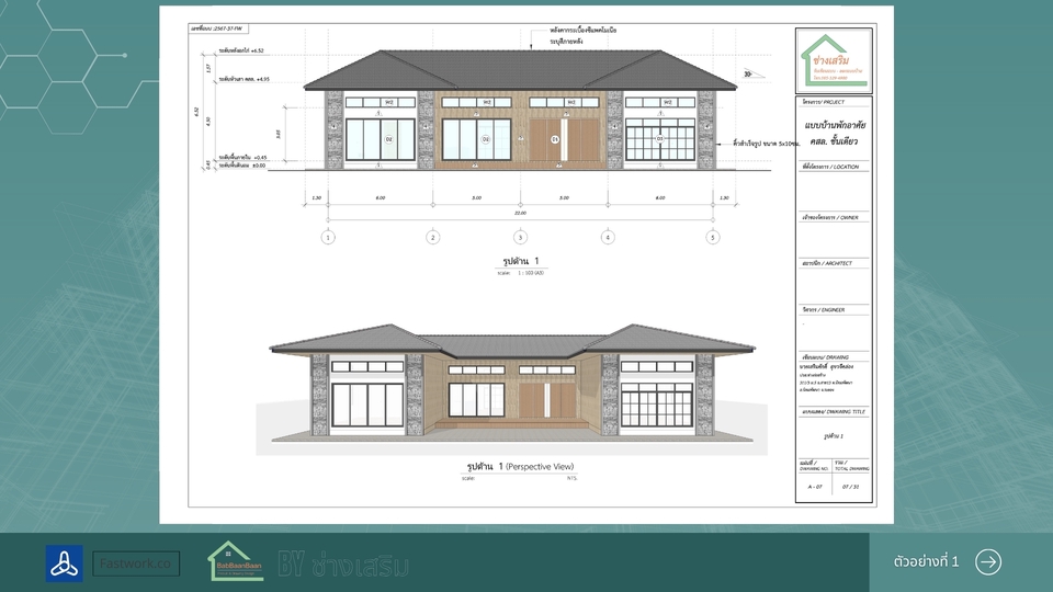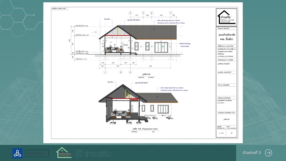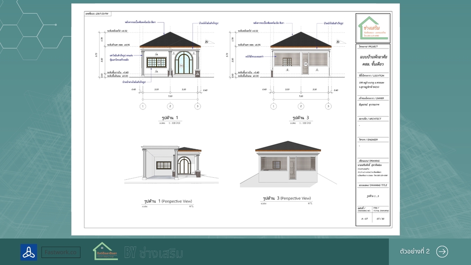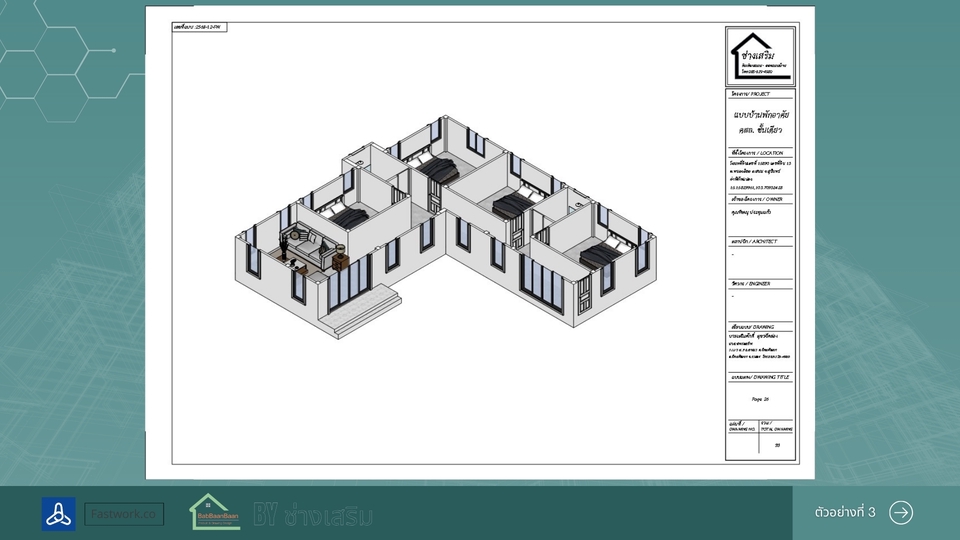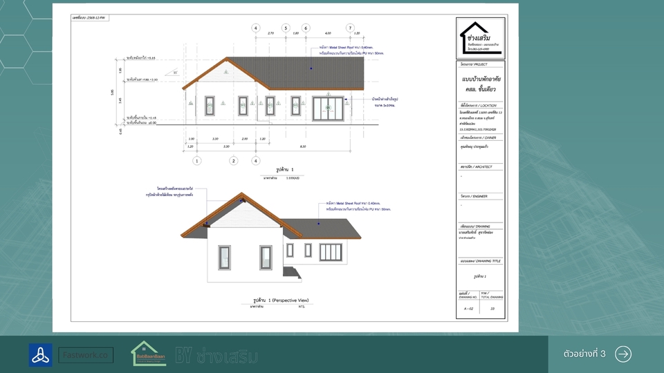 เขียนแบบบ้านยื่นขออนุญาตก่อสร้าง พร้อม 3D สำหรับบ้านขนาดเล็กไม่เกิน 150 ตารางเมตร