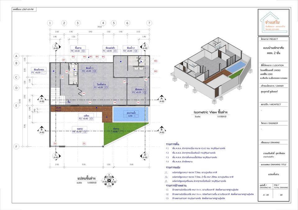 แบบก่อสร้าง ขนาด150 ตร.ม.ขึ้นไป