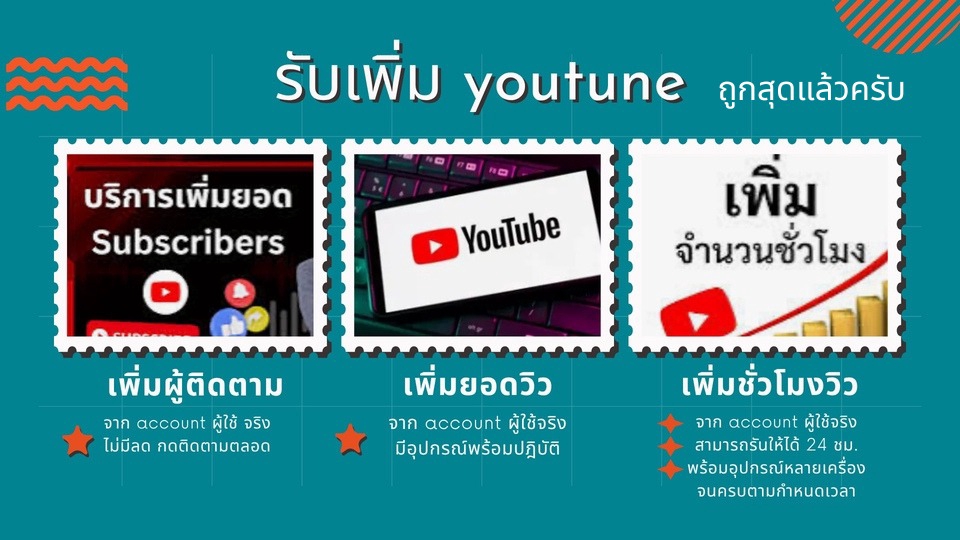บริการ: เพิ่มยอด YouTube (ผู้ติดตาม / วิว / ชั่วโมงรับชม) 📍 จากบัญชีผู้ใช้จริง 100% ไม่มีบอท ไม่ลด เหมาะสำหรับคนที่ต้องการปั้นช่องให้ดูน่าเชื่อถือ และผ่านเกณฑ์ YouTube Partner Program ⸻ ✅ รายการที่รับทำ: 1. เพิ่มผู้ติดตาม (Subscribers) • จาก account ผู้ใช้จริง • ไม่มีลด กดติดตามตลอด • เพิ่มความน่าเชื่อถือให้ช่อง • ✅ เหมาะสำหรับช่องใหม่ที่ต้องการผ่าน 1,000 ซับ 2. เพิ่มยอดวิว (Views) • มาจากอุปกรณ์จริง ผู้ใช้งานจริง • ช่วยดันคลิปให้มี engagement • ✅ เหมาะกับคลิปเปิดตัวหรือคลิปที่ต้องการโปรโมตเฉพาะ 3. เพิ่มชั่วโมงรับชม (Watch hours) • จากผู้ใช้จริง รับชมได้ 24 ชม. • ใช้อุปกรณ์หลายเครื่องให้ครบตามเวลา • ✅ เหมาะสำหรับคนที่ต้องการผ่านเกณฑ์ 4,000 ชม. เพื่อเปิดสร้างรายได้ 🔒 ความปลอดภัย: • ไม่ขอรหัสผ่าน • ไม่กระทบช่อง • ใช้วิธีธรรมชาติจากผู้ชมจริง • ไม่เสี่ยงโดนแบน ⸻ 🧾 หมายเหตุ (สำหรับใส่ท้ายงาน): บริการนี้เป็นการโปรโมตแบบธรรมชาติจากผู้ใช้งานจริง ไม่ใช่การปั๊มหรือใช้งานบอท