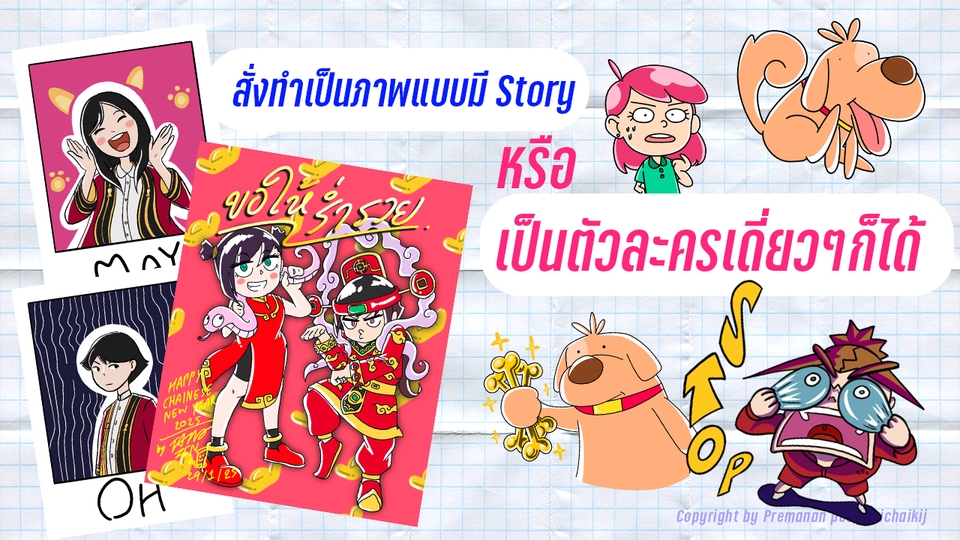 Character ตัวละครแสนน่ารักน่าชัง งานสีสุดแสนจะธรรมด๊า ธรรมดา แต่เปี่ยมด้วยความสนุก สไตล์นักวาด หากท่านกำลังหางานสไตล์นั้นอยู่ทักมาได้เลย 📍ประเภทงาน • ของขวัญวันสำคัญ • ตัวละครเปล่าๆ 📍เทคนิค • Digital Painting • ลงสีแบบไม่เน้นแสงเงา 📍ขนาดภาพ • 1:1 (Square 1080*1080) • 4:5 (Instagram Photo Size 1080*1350) 📍ระยะเวลาการทำงาน • ขึ้นอยู่กับรายละเอียดมากน้อยแค่ไหนซึ่งจะทำการคุยกันก่อน เริ่มงานเสมอ 📍เงื่อนไขการแก้ไขงาน • ภาพร่าง 2 ครั้ง • ลงสี 1 ครั้ง • หากขอแก้ไขเพิ่มเกินจากโควต้าที่มี ครั้งละ 100฿ 📍ขั้นตอนการทำงาน • คุณลูกค้าจะต้องบอกรายละเอียดและความต้องการก่อนเริ่มร่างภาพ ✅ • หากมีการจะนำไปพิมพ์ช่วยบอกรายละเอียดแก่เรา เพื่อทำการตั้งค่าสำหรับงานใช้พิมพ์✅ • ประเมินราคางาน✅ • ทางเราจะร่างและลงสีหยาบๆเพื่อเป็นไกด์ไลน์ให้กับลูกค้า ✅ • ชำระค่าใช้จ่ายก่อนเริ่มลงงานจริงทุกครั้ง ✅ • ทำการตัดเส้นและลงสีแล้วส่งมอบงาน ✅ • ส่งงานลูกค้าผู้ว่าจ้างผ่าน Google Drive✅ 📍ขั้นตอนการชำระเงิน • แสดงสลิปโอนเงินทุกครั้งหลังทำการโอนเสร็จ 📍สิ่งที่ท่านจะได้รับ • ไฟล์คุณภาพสูง 300DPI • ภาพวาด Digital สกุลไฟล์ (JPG, PNG, PDF) • นำไปใช้เชิงพาณิชย์ได้