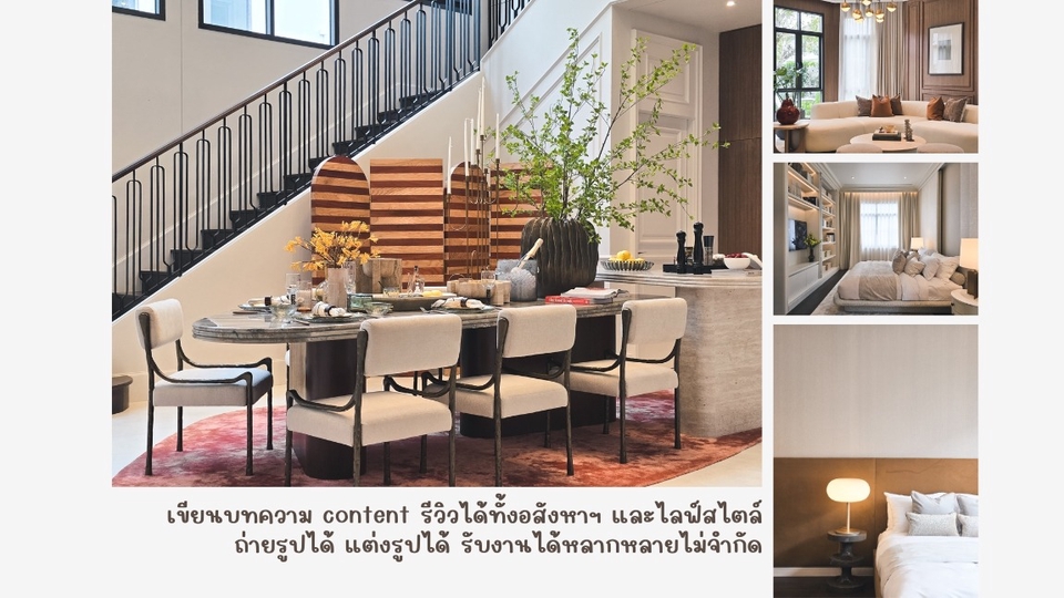 สามารถเขียนบทความรีวิวอสังหาริมทรัพย์และไลฟ์สไตล์ได้ ถ่ายรูป แต่งรูป และเขียนออกมาเป็นชิ้นงานได้