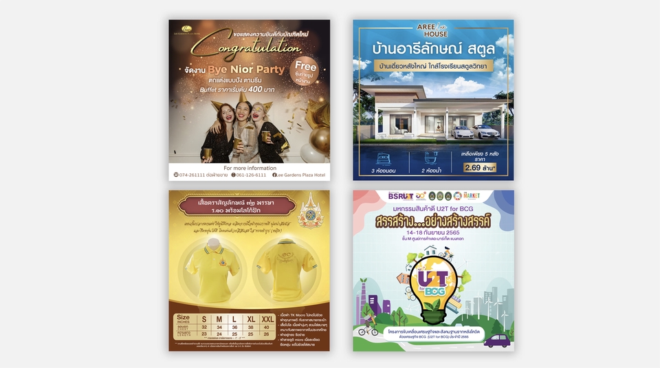 1. คุยรายละเอียดงาน - ลูกค้าแจ้งประเภทของงาน เช่น ทำไวนิล สติ๊กเกอร์ เป็นต้น พร้อมบอกขนาดของงานที่จะทำ (กว้างxยาว หน่วยเป็นเซนติเมตร หรือ เมตร) - แจ้งความต้องการหรือข้อมูลที่ต้องการใส่ลงไปในงาน เช่น โทนสี อักษร หรือรูปภาพประกอบ ตาม REF ที่ลูกค้าบรีฟมา 2. ระบุ ข้อความ เนื้อหา เช่น คำโฆษณา สรรพคุณ วีธีใช้ เป็นต้น ในภาพนั้นๆ **แนะนำสรุปมาให้เรียบร้อย ตามที่ลูกค้าต้องการใส่ลงในงาน ส่วนงาน ads หากต้องการโปรโมทใน facebook โปรดแจ้งก่อน (ทาง facebook กำหนดให้แต่ละ artwork มี text อยู่แค่ 20% ของภาพเท่านั้น) 3.ระยะเวลาส่งงาน 1-3 วัน หรือตามนัดจะเริ่มส่งต้นแบบแรก สามารถแก้ไขงานได้ 3 ครั้ง / ชิ้นงาน (ไม่นับแก้คำผิด) (หากแก้เกิน 3 ครั้งจะคิดค่าใช้จ่ายเพิ่มเติมโดยราคาจะขึ้นอยู่ที่การแก้ไขนั้นๆ ยกเว้นแก้ไขคำผิดไม่นับแก้ไขงาน) 4. เสร็จงานลูกค้าจะได้รับไฟล์ .jpeg พร้อมไฟล์ .ai หรือ .pdf (ไฟล์แก้ไขได้) รายละเอียดราคาเพิ่มเติม บริการงานด่วน, งานเหมา 10 ภาพขึ้นไป, งานเหมารายเดือน สนใจสอบถามรายละเอียดเพิ่มเติมได้ และยินดีให้บริการค่ะ ขั้นตอนการทำงาน 1. คุยรายละเอียดของงาน หากลูกค้ามีสไตล์หรือรูปแบบงาน REF สามารถส่งมาให้ดูได้เพื่อการทำงานที่ง่ายขึ้น 2. เมื่อตกลงรายเอียดต่างๆ ครบถ้วน ชำระเงินเพื่อเริ่มดำเนินงาน 3. ส่งงานครั้งแรกเพื่อดำเนินการแก้ไข ในส่วนของ การจัดวาง ภาพ สี ต่างๆ 4. สามารถแก้ไขแบบได้ไม่เกิน 3 ครั้ง / ครั้งถัดไปมีค่าใช้จ่ายเพิ่ม 100 บาท 5. จัดส่งไฟล์งานพร้อมพิมพ์ ผ่าน Google drive หรือ E-mail ลูกค้า