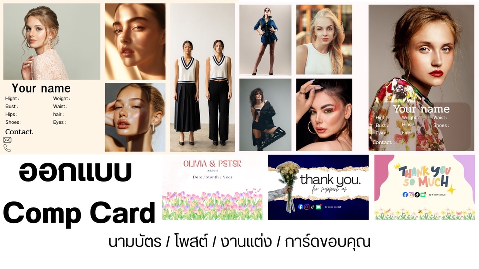รับออกแบบงานการ์ดต่างๆ/นามบัตร/Comp card / การ์ดขอบคุณ สไตล์น่ารัก