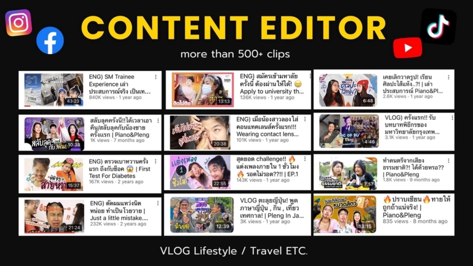 10 คลิป : Short VDO Content ให้ Tiktok,Reel FB, IG, Short (รวมถ่าย+ตัดต่อ+พากย์เสียง)