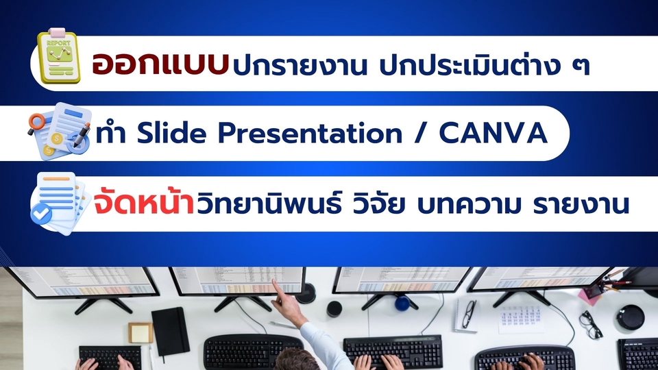 ออกแบบปกรายงาน ปกประเมินต่าง ๆ ทำ Slide Presentation / CANVA จัดหน้าวิทยานิพนธ์ วิจัย บทความ รายงาน