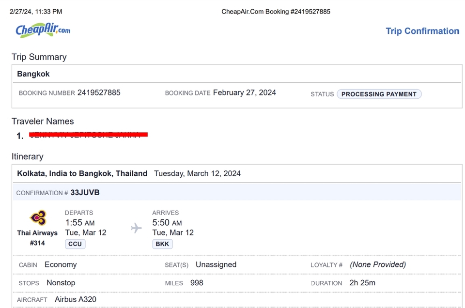 รับจองตั๋วเครื่องบินเพื่อทำวีซ่า ประสบการณ์กว่า 10 ปี สามารถเลือกประเทศ วันเวลาได้ (2ท่าน)