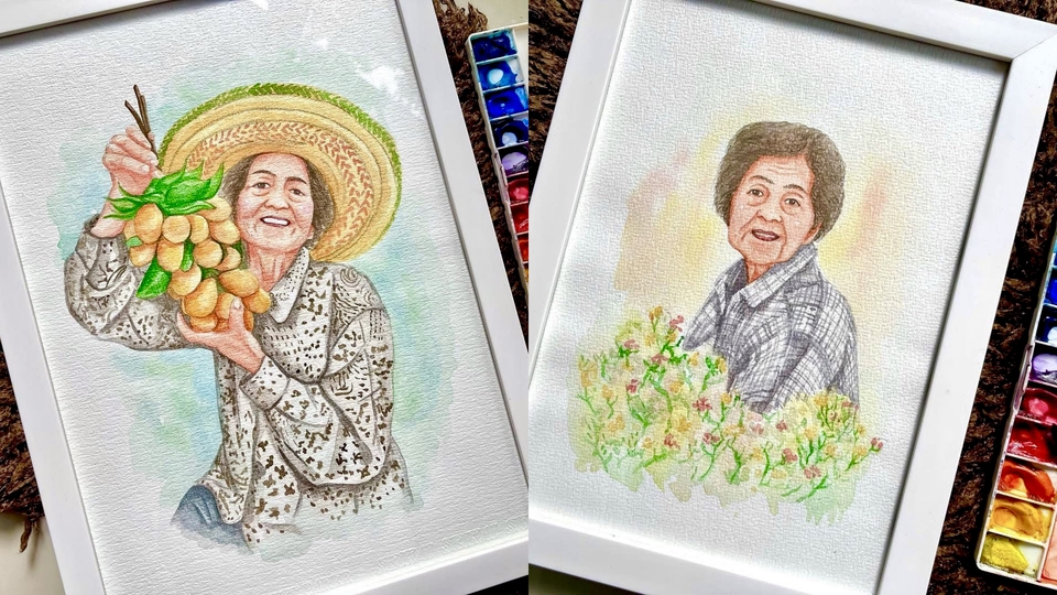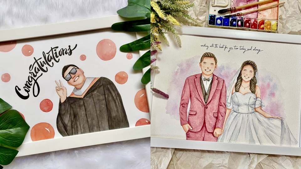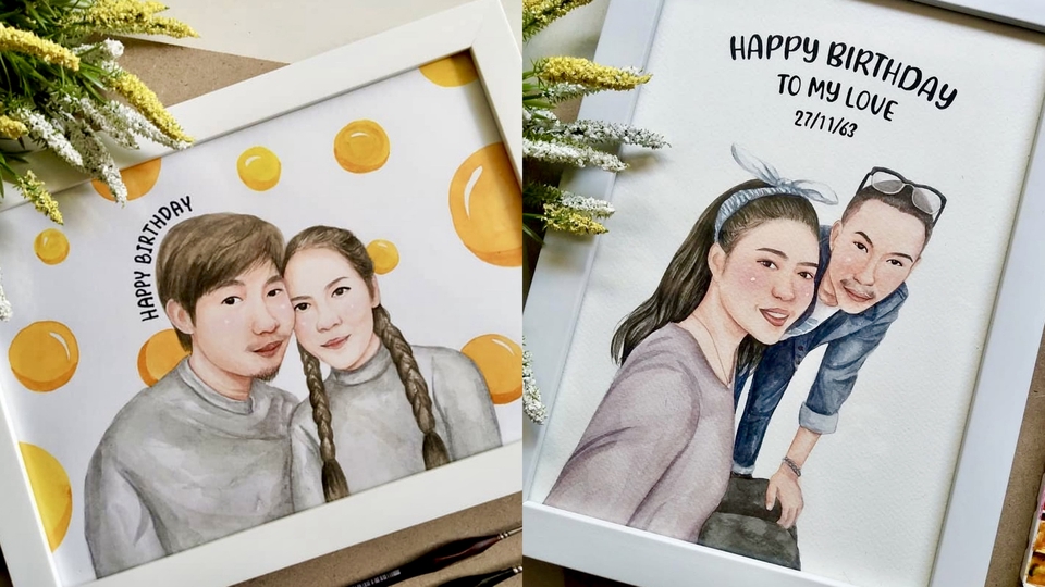 ภาพวาดสีน้ำ Portrait สไตล์การ์ตูนกึ่งเหมือนจริง
