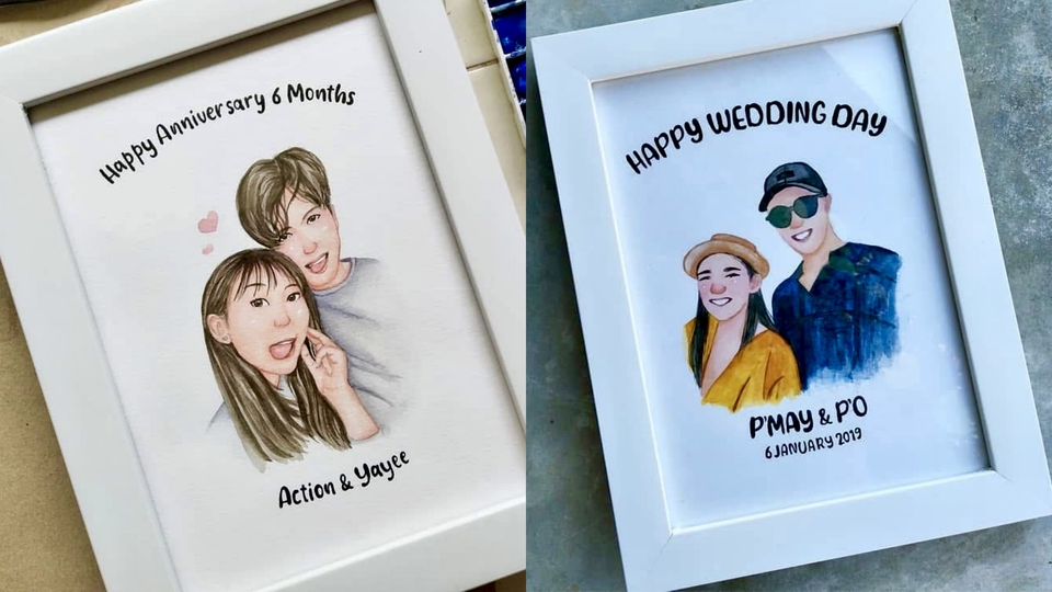 ฿400ภาพวาดสีน้ำ ขนาด A6 (ไม่รวมกรอบ) เพิ่มคนในภาพ คนละ 100 บาท