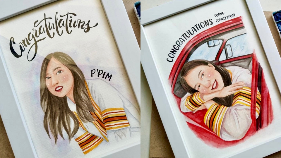 ฿500ภาพวาดสีน้ำ ขนาด A5 (ไม่รวมกรอบ) เพิ่มคนในภาพ คนละ 150 บาท