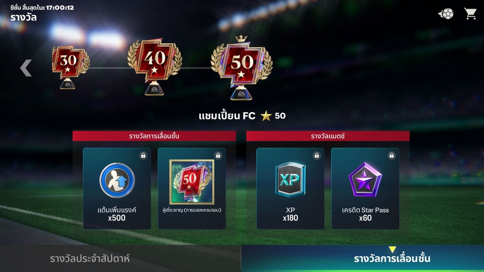 ถึงแรงค์โปร v 100 บาท ถึงแรงค์เวิลด์คลาส v 200 บาท ถึงแรงค์ ตำนาน v 300 บาท ถึงแรงค์ แชมป์เปี้ยน fc 400 บาท