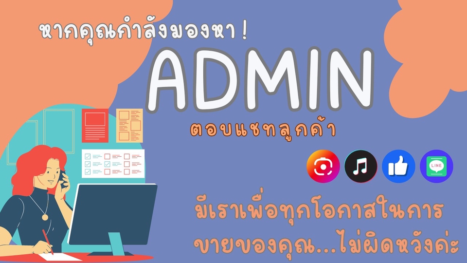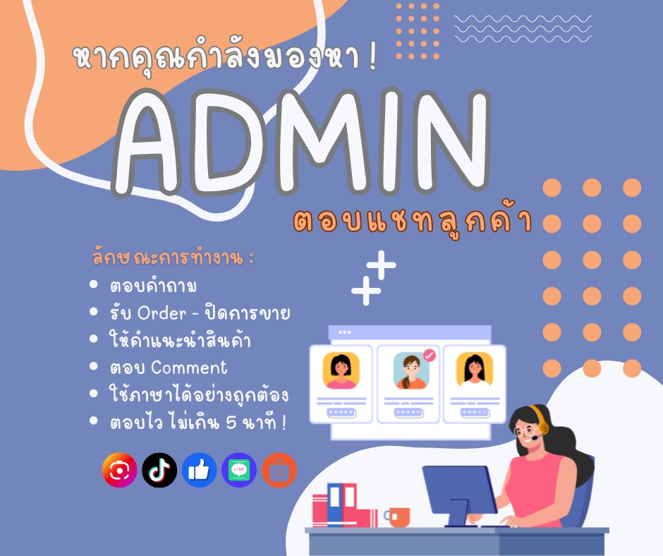 Admin ตอบแชท ร้านค้าออนไลน์ Tiktok, Shopee, Lazada, LineOA, Business Suite