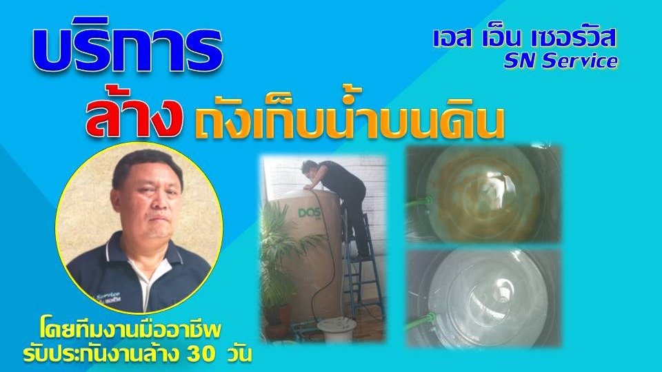 บริการล้างถังเก็บน้ำบนดิน พื้นที่ให้บริการ กรุงเทพฯ ชั้นนอก ( ดอนเมือง , สายไหม , บางเขน , จตุจักร , ลาดพร้าว , ประชาชื่น ) , นนทบุรี , ปทุมธานี รายละเอียด บริการล้างโดยทีมงานมืออาชีพ ที่มีความรู้ ความชำนาญ ระยะเวลาให้บริการ 45-60 นาที ในวันที่ช่างเข้าบริการควรให้น้ำในถังเก็บน้ำเหลือประมาณครึ่งถัง (สำหรับเอาไว้ล้างถังเก็บน้ำ ) รับประกันงานล้าง 30 วัน ขอสงวนสิทธิ์ในการให้บริการ ในกรณีที่ช่างตรวจสอบแล้วประเมินว่าอาจเสี่ยงต่อความเสียหายขณะให้บริการ ถังเก็บน้ำที่ไม่ได้ทำความสะอาดเป็นเวลานาน อาจเป็นแหล่งสะสมของสิ่งสกปรก ตะกอน ตะไคร่ รวมไปถึงคราบจุลินทรีย์ที่มองไม่เห็นซึ่งอาจเป็นสาเหตุของ อาการคันหรือผื่นแพ้โดยไม่ทราบสาเหตุ เพื่อสุขอนามัยที่ดี ควรล้างทำความสะอาดถังเก็บน้ำเป็นประจำทุก ๆ 6 เดือน โดยทีมงานมืออาชีพ ที่มีความรู้ ความชำนาญ ผ่านการอบรม จากกรมพัฒนาฝีมือแรงงานผ่านการทดสอบฝีมือ และ มีการตรวจสอบประวัติอาชญากรรม มาตรฐานการบริการ 1. ปกป้องพื้นที่ พื้น ผนัง 2. ตรวจสอบจุดต่อ และข้อต่อน้ำเข้า-น้ำออก 3. ตรวจสอบการทำงานของปั๊มน้ำ ระบบน้ำเข้า-น้ำออก ถังเก็บน้ำ และลูกลอย ก่อนล้าง 4. ตรวจสอบตัวอุปกรณ์ที่ใช้วัดระดับน้ำ (ลูกลอย) 5. ล้างภายในถังเก็บน้ำ ด้วยปืนฉีดน้ำแรงดันสูง 6. ดูดเศษตะกอน และสิ่งสกปรก ออกจากถังเก็บน้ำ 7. ทำความสะอาดพื้นผิวภายนอกถังเก็บน้ำ และพื้นที่โดยรอบ 8. ทำความสะอาดฝาครอบ และพื้นผิวภายในปั๊มน้ำ 9. ตรวจสอบการทำงานของปั๊มน้ำ ระบบน้ำเข้า-น้ำออก ถังเก็บน้ำ และลูกลอย หลังล้าง 10. ทำความสะอาดพื้นที่โดยรอบ พร้อมส่งมอบงาน และให้คำแนะนำวิธีการดูแลรักษา หมายเหตุ . กรณีสถานที่เข้าให้บริการของลูกค้ามีค่าใช้จ่ายในการจอดรถ ลูกค้าเป็นผู้จ่ายค่าที่จอดรถให้ช่าง ตามจริงที่โครงการฯ เรียกเก็บค่าที่จอดรถ . กรณีเข้าบริการแล้วพบว่า ไม่มีที่จอดรถ หรือ ที่จอดรถห่างไกลบริเวณติดตั้ง 50 เมตรขึ้นไป หรือ มีการเดินทางเข้าไปยังบริเวณหน้างานที่ไม่สะดวก เช่น ทางเดินคับแคบ ช่างขออนุญาตสงวนสิทธิ์ในการให้บริการเนื่องจากข้อจำกัดในการเคลื่อนย้ายอุปกรณ์ในการทำงาน . กรณีช่างเดินทางไปแล้วไม่สามารถเข้าให้บริการเนื่องจากหน้างานไม่พร้อมรับบริการได้ลูกค้าจ่ายค่าเดินทางให้ช่าง 300 บาท ต่อครั้ง