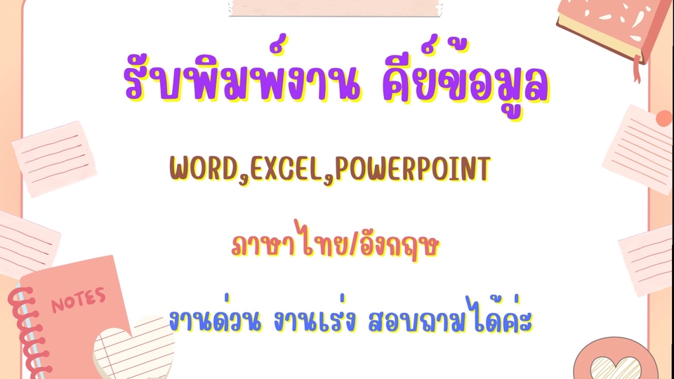 รับพิมพ์งาน คีย์ข้อมูล ไทย อังกฤษ จัดรูปแบบเอกสาร word excel powerpoint