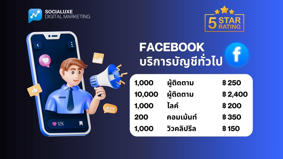 ฿500เพิ่มผู้ติดตามเพจ Facebook คนไทยแท้ 100% ช่วยเพิ่มความน่าเชื่อถือให้กับเพจของคุณ เหมาะสำหรับร้านค้าออนไลน์หรือเพจธุรกิจที่ต้องการขยายฐานลูกค้า